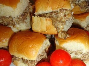 Brown a pound to 1.5 pounds of ground beef. Add an onion soup dry mix packet (such as Lipton) while browning. Once browned, drain grease. Add 8 oz. of Velveeta, cubed. (Note: There are now Velveeta mini blocks which can make this come together even faster) Stir until melted. Place on rolls such as slider rolls, Hawaiian rolls or […]