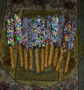 Start planning some chocolate dip treats such as chocolate dipped pretzels, Oreos, spoons, marshmallows and candy canes.