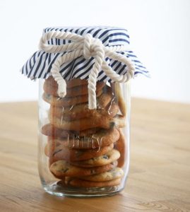 At holidays,tins are nice to give cookies in. You can stack them in glass jars, too. You can punch holes into a paper plate and thread ribbon through the holes and tie a bow. You can run paper lunch sacks through your printer, too. Think: Gift bags and goodie bags with cute images or messages.